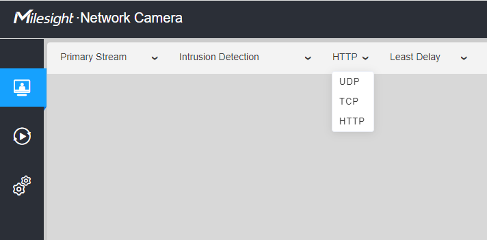 When the MPlayer Plugin is installed, you can choose which protocol and mode to use for streaming on the top of live view.