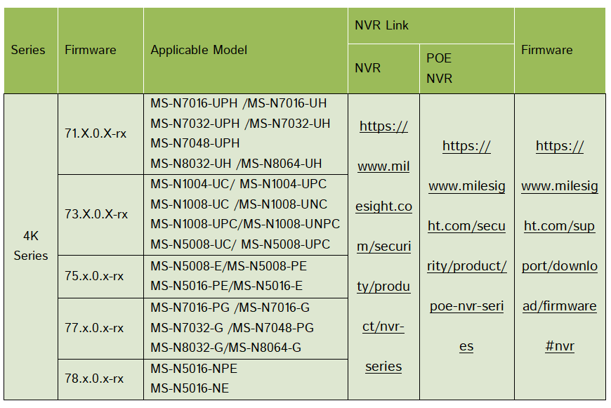 1) The second number of firmware stands for major version number, while the last two number means the minor version number. Take 71.9.0.19-r2 for example, it means that the NVR’s major version is 9 and it’s minor version is 19-r2 indicates an iterative update of some minor version.