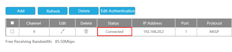 The password of the IP camera is not the same as the channel, so status will be shown as