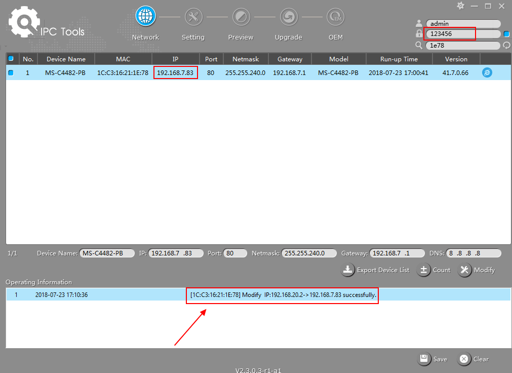 Pull out the IPC1 and edit the IP address into 192.168.7.151, but don’t change the password.