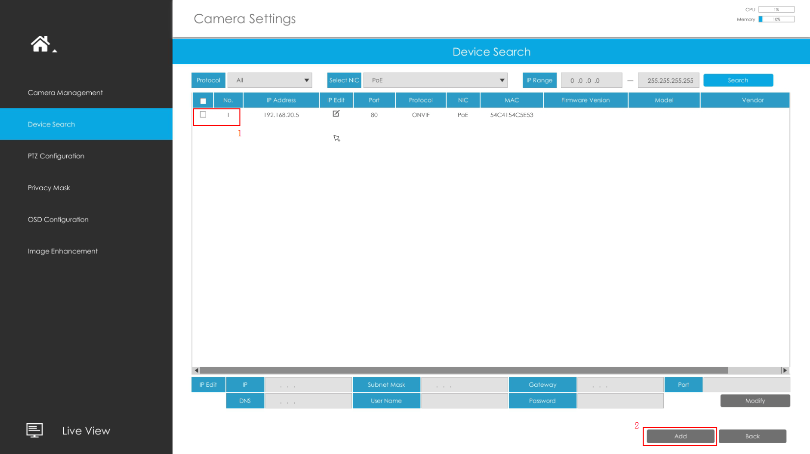 Select the Third-party PoE camera and press “Add” button.