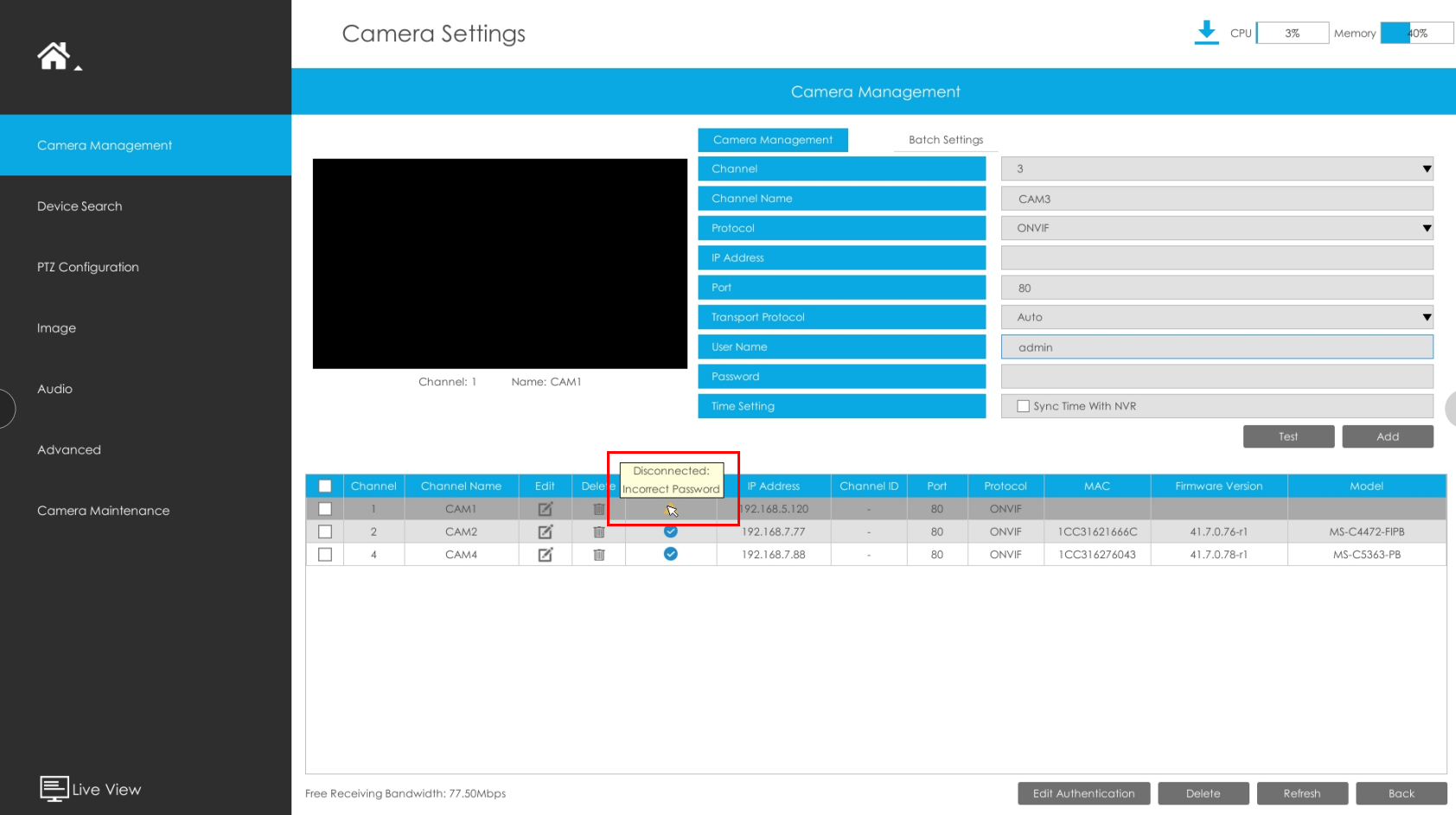 The third-party IP cameras are successfully added and displayed on the Camera Management list, but the status shows disconnected. The common causes of this problem could be network issue, improper device configuration and protocol incompatibility issue. In this article we will go through some basic cases and solutions of the problem.