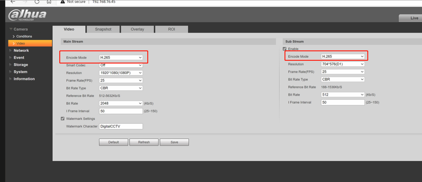*Check third-party camera bit rate setting. For example, on some models of Axis camera the bit rate is a quite high value by default in ONVIF profile, shown as below: