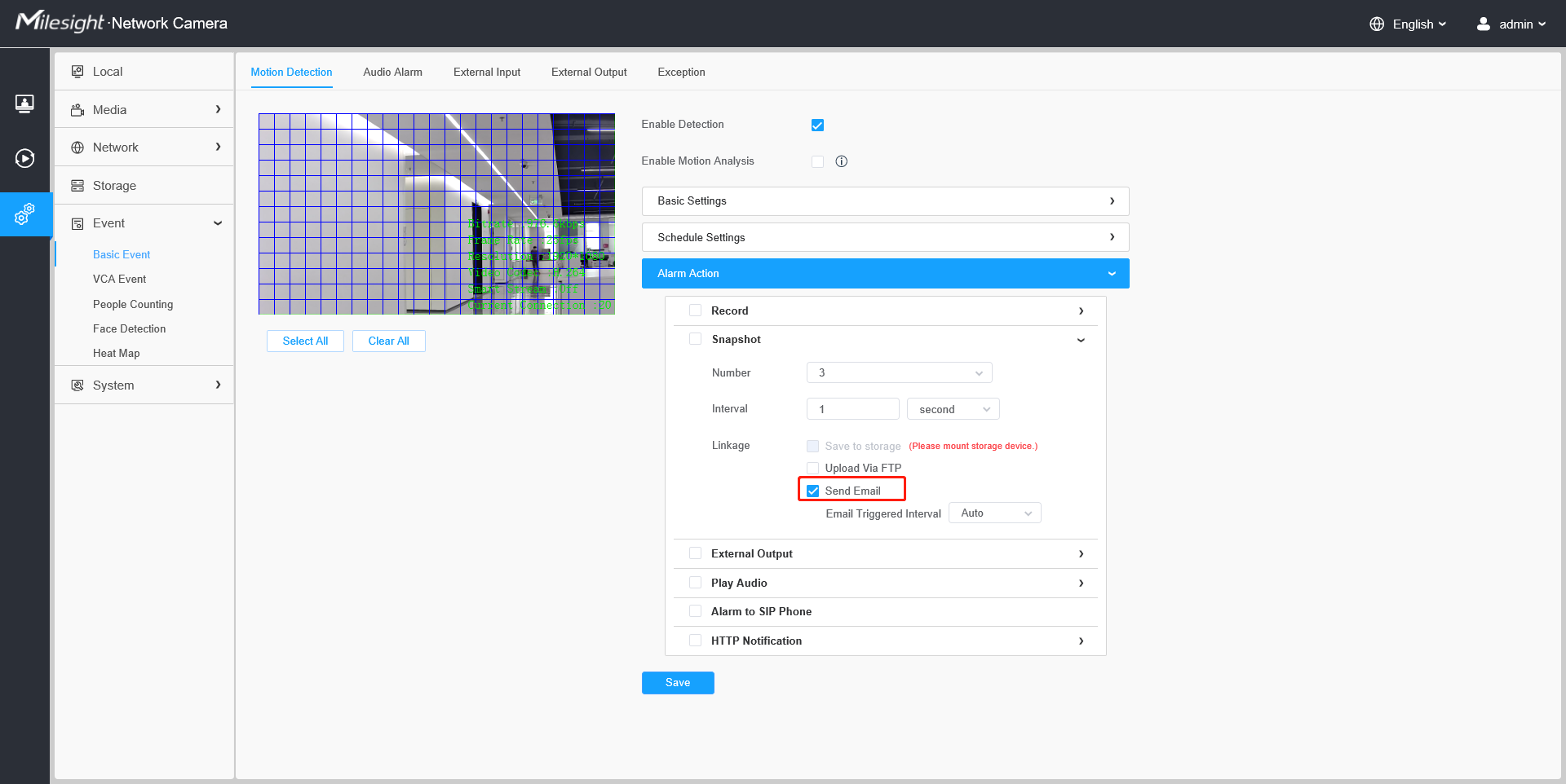 Step3: After Email setting, you can use it in Events. Take Motion Detection as an example.