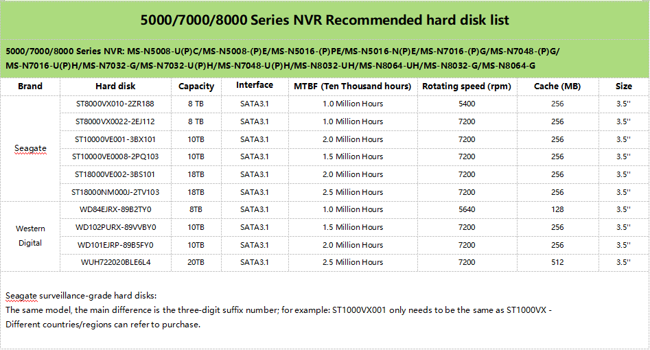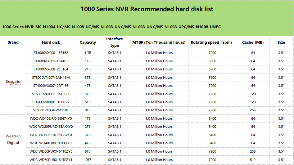 In the old list, you can find some models that are still suitable for Milesight NVRs. While these drives may not offer the same level of performance and reliability as the latest recommended models, they remain viable options worth considering.