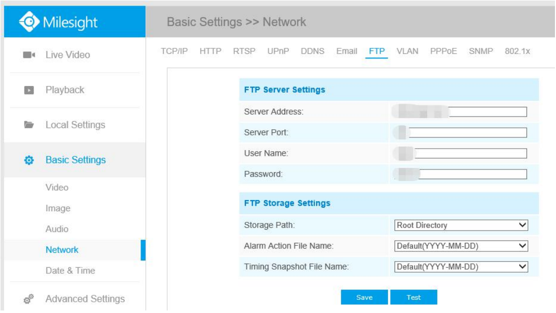 Step1: Log in web,go to“Basic Settings”→“Network”→“FTP”;