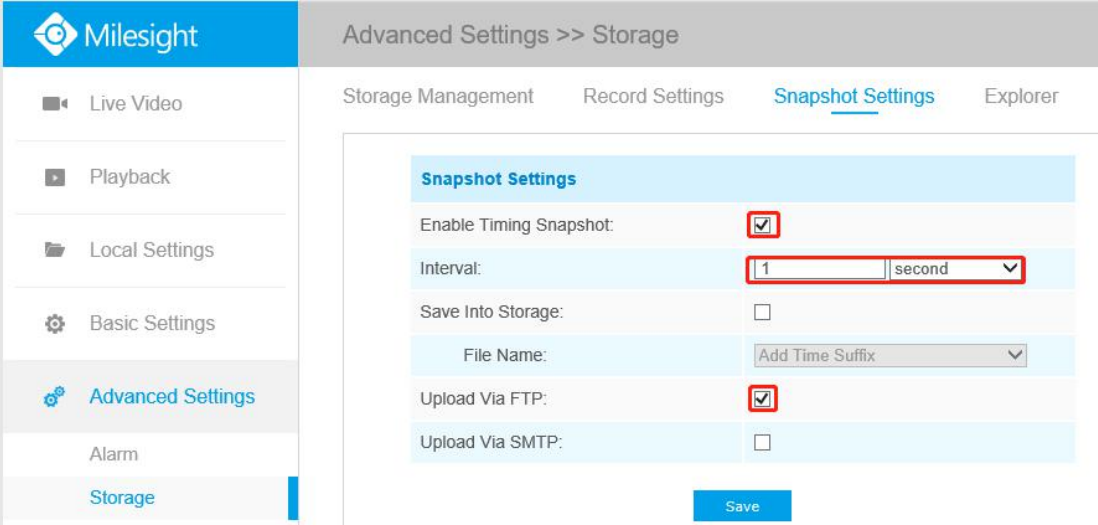 Stage1: IPC Setting. Set Milesight IPC to capture snapshot in fixed interval. (Recommend to