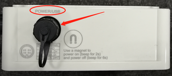 Use a magnet to activate the device. Beeping for 2s means power on while beeping for 6s means power off.