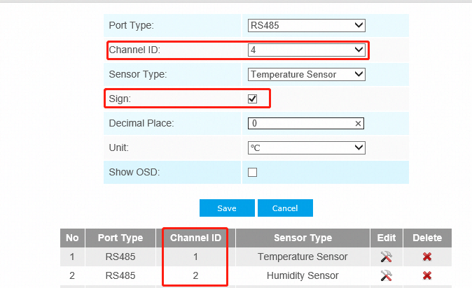 1. The Channel ID, Sensor Type and Sign in IoT network cameras' sensor configuration page should be consistent with those on Tool Box.