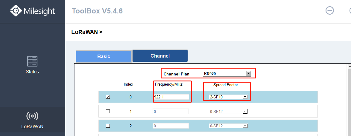 There are 7 kinds of Channel Plans to choose from, KR920, AS923, AU915, US915, EU868, IN865, RU864. Among them, KR920, AS923, AU915 and US915 belong to Milesight 915 hardware series while EU868, IN865 and RU864 belong to Milesight 868 hardware series.