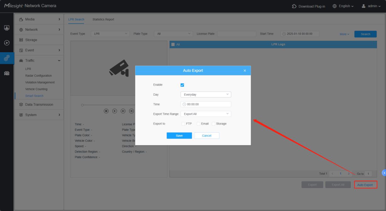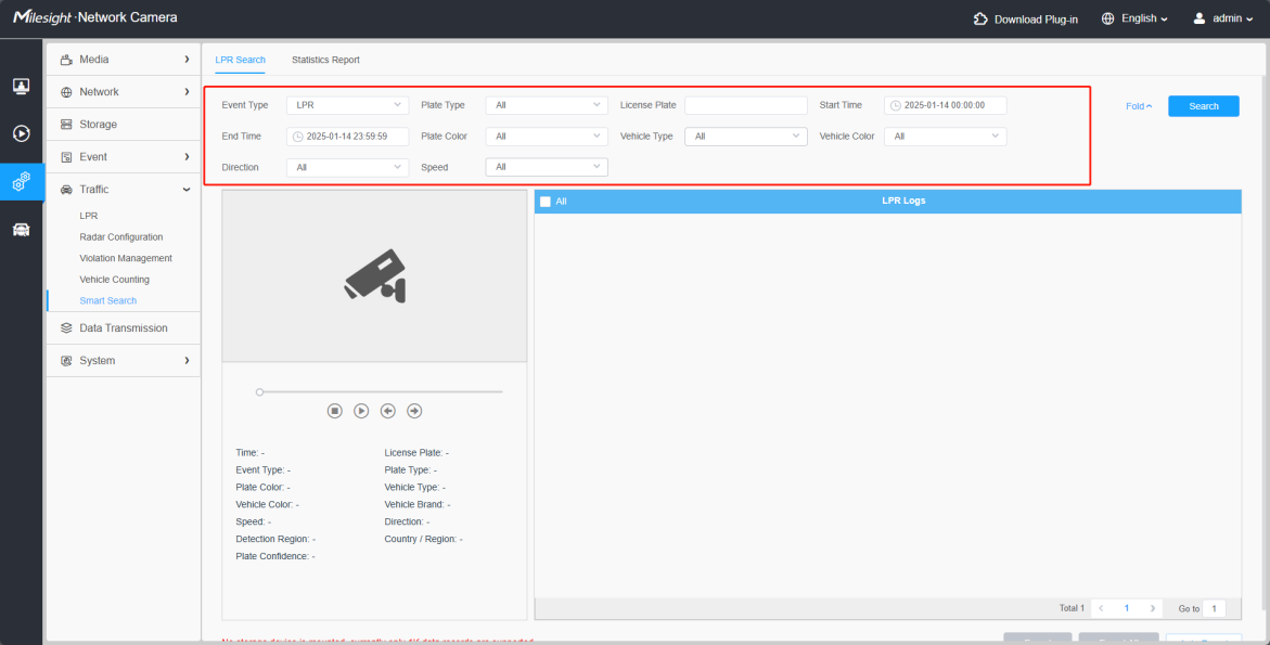 2. Smart Search requires storage media [SD card or NAS] to mount and store license plate recognition images. If there is no SD card or storage snapshot configuration, the searched records will only display the recognized license plate characters.