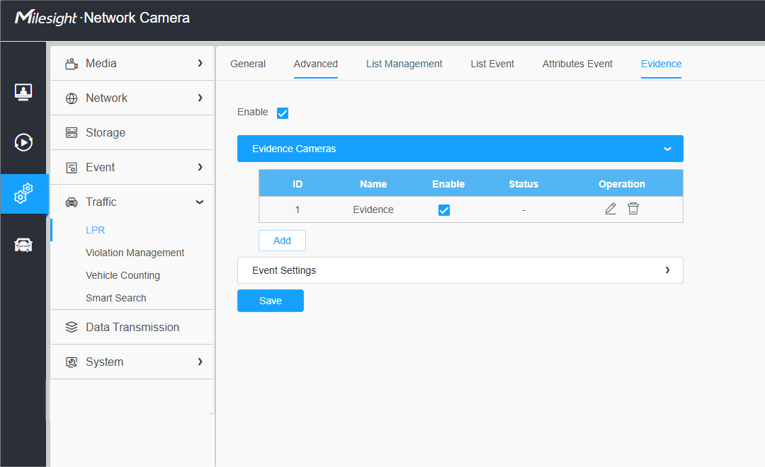 1. Enter Traffic -> LPR -> Evidence interface