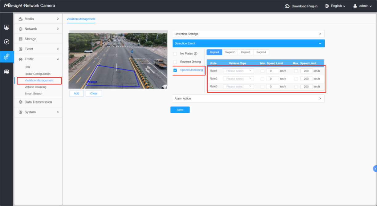 Speed Monitoring is only available with the Milesight Radar Traffic Camera.