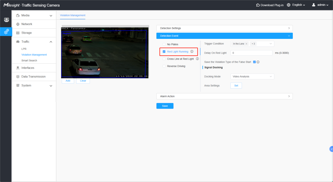 The difference between Traffic X series and Road Traffic Camera is that it can support Red light Running and Cross Line at Red Light.The description will be focused on these two parts.
